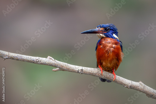 © Riadi, Fototapeta premium the blue-eared kingfisher perching on branch