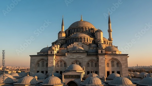 © FARJANAAKTER, Obraz premium The blue mosque at sunset in istanbul, turkey with clear sky