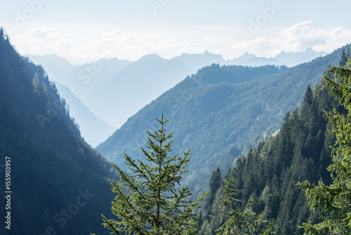 Fototapeta premium The blue mountains in the fog. Biburger see Kühtai, Taxegg