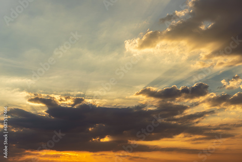 Fototapeta premium The blue sky is orange and the clouds are soft when the sun is about to set.