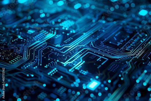 Obraz premium The Blue technology background reveals an intricate circuit pattern that...
