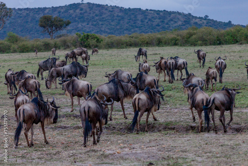 Naklejka premium The blue wildebeest (Connochaetes taurinus) at Maasai Mara National Reserve, Narok, Kenya