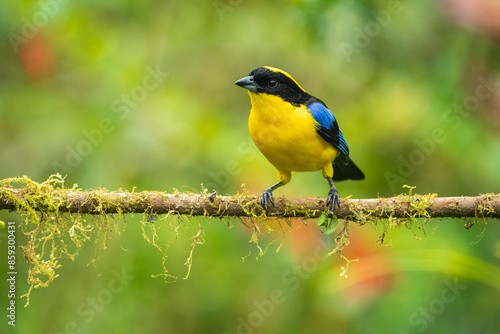 Naklejka premium The blue-winged mountain tanager (Anisognathus somptuosus) is a species of bird in the family Thraupidae, the tanagers. It is native to South America, where it is found in Bolivia, Colombia, Ecuador,