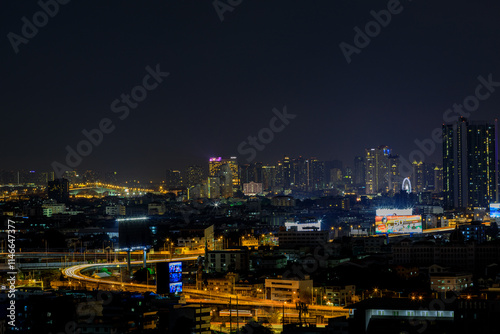 © bangprik, Obraz premium The blurred background of fireworks (light trails) is beautiful at night, seen in the New Year holidays, Christmas events, for tourists to take pictures during public travel.