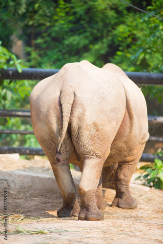 Fototapeta premium The body proportions of a rare wild rhinoceros in zoo