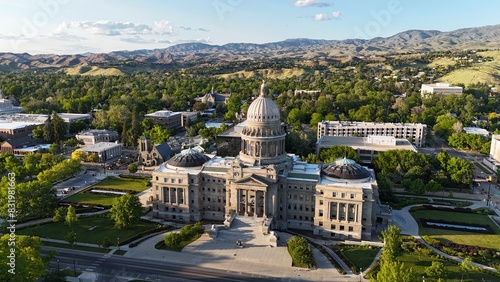 Obraz premium The Boise State Capital building surrounded by greenery and other buildings...