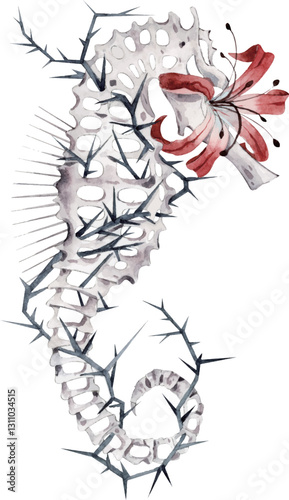 © Aug, Fototapeta premium The bones of the seahorse are entangled with thorns