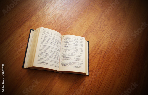 © Alexander, Fototapeta premium The book lays on a brown surface