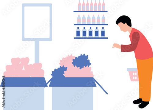 Naklejka premium The boy is looking for groceries to buy.