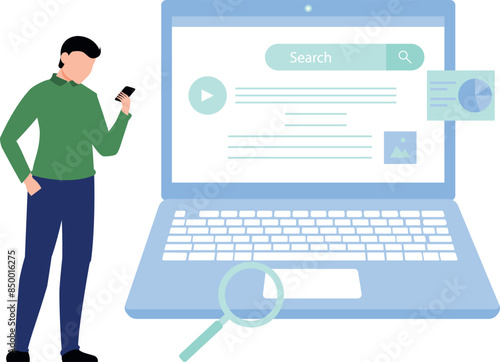 © Flaticons, Fototapeta premium The boy is looking into mobile.