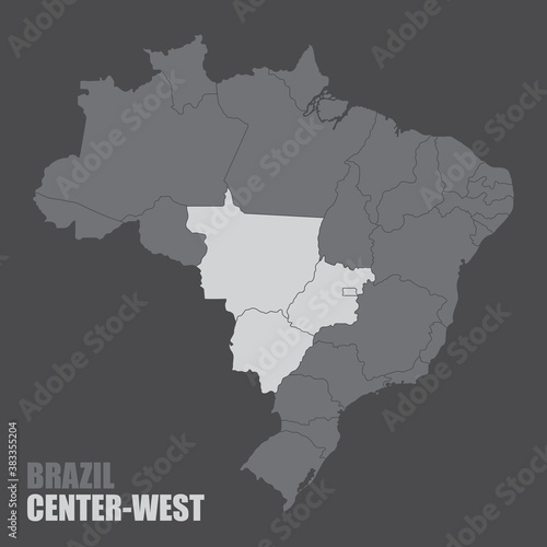 Obraz premium The Brazil map with the highlighted Center-West Region