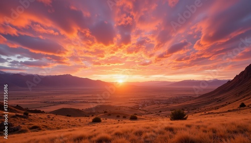 Fototapeta premium The breathtaking sight of the sun setting over vast golden grassland