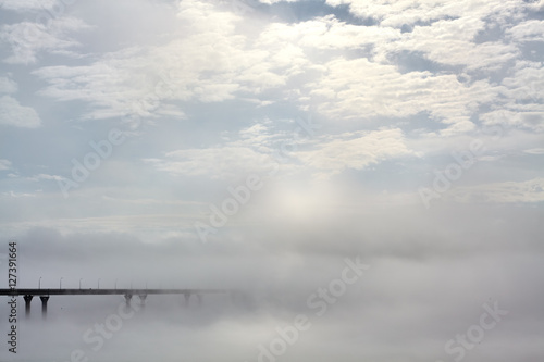 © reconceptus, Obraz premium the bridge goes into the morning mist fog