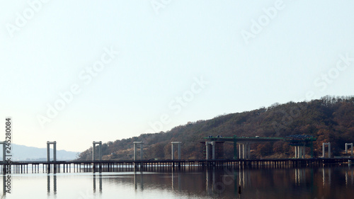 © Hyejin Kang, Naklejka premium The bridge is being built to cross the river.