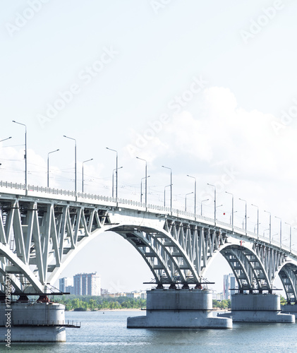 Fototapeta premium The bridge through the river Volga. Saratov.The bridge over the Volga River...