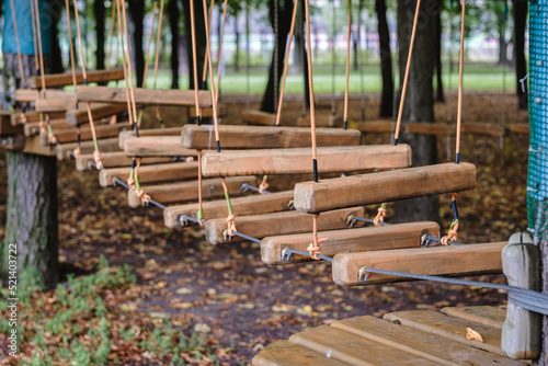 Fototapeta premium The bridges, ropes and ladders of the Adventure Park are designed for...