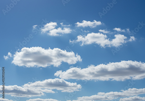Fototapeta premium The bright blue sky is dotted with scattered white clouds, creating a serene and airy scene