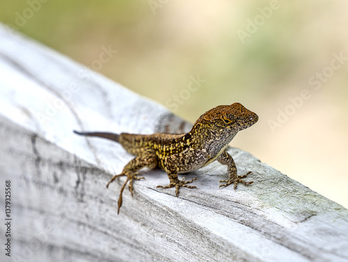 © Kirk B, Naklejka premium The brown anole, also known commonly as the Cuban brown anole, Bahaman anole, or De la Sagra's anole, is a species of lizard in the family Dactyloidae