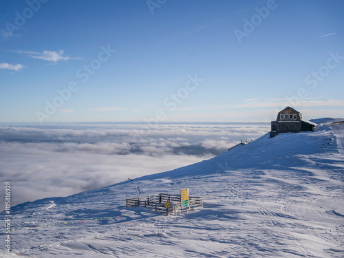 © Akbari, Obraz premium The Bucegi mountains seen from "Cota 2000", Sinaia, Romania with beautiful clouds. They are part of the Southern Carpathians group of the Carpathian Mountains.