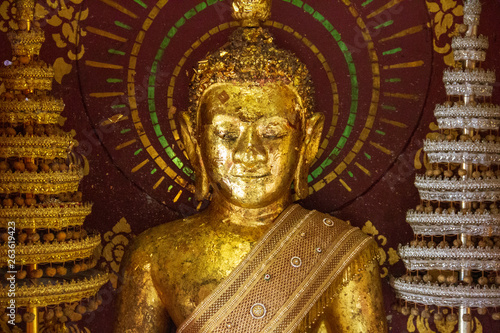 © Montree, Fototapeta premium The Buddha inside a tiny room for worship in the temple.
