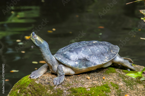 Fototapeta premium The Burmese roofed turtle (Batagur trivittata) is one of six species of turtle in the genus Batagur of the family Geoemydidae. It is endemic to Myanmar. It remains very rare in the wild.