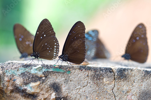 © jayzynism, Fototapeta premium The Butterflies "Common Crown" eaten mineral on stone.