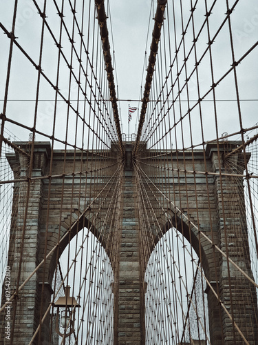 Fototapeta premium the cables on the brooklyn bridge that will be closed in half