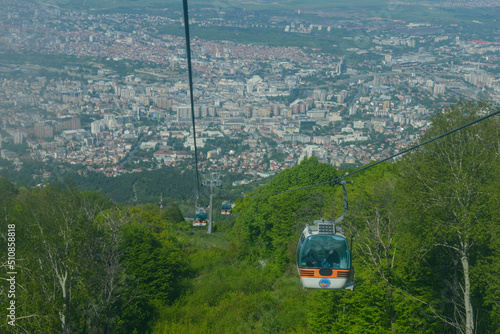 © fotoember, Fototapeta premium The cableway to mount Vodno from Skopje on Macedonia