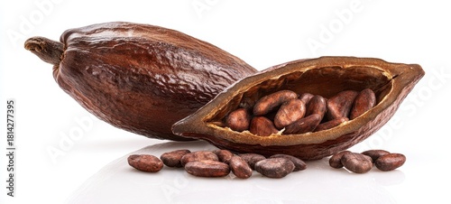 © Studio Nova, Obraz premium The Cacao Pod Open to Reveal Cocoa Beans on a White Background