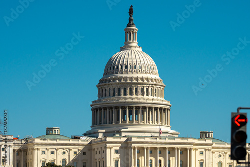 © Volodymyr, Naklejka premium The Capitol symbol of democratic. Independence Day. The United States Capitol governance. Congress in Washington, DC. American democracy. The Capitol historic building. Capitol on skyline.
