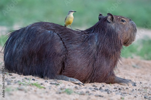 © Johannes Jensås, Fototapeta premium The capybara (Hydrochoerus hydrochaeris) and the bird.