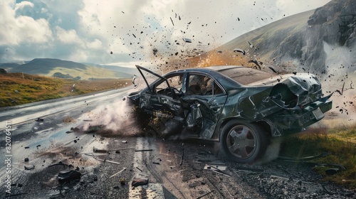 © Артур Комис, Obraz premium the car is broken down on the road. Selective focus