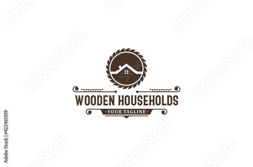 Fototapeta premium the carpenter's house logo with the addition of a round saw illustration...