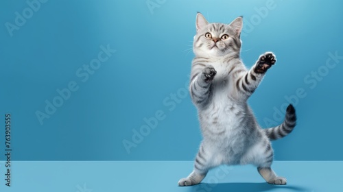 © Katya, Naklejka premium The cat stands on its hind legs and dances