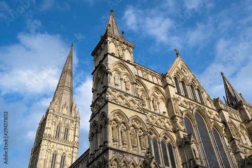 © Yasemin, Fototapeta premium The Cathedral, known as the Cathedral Church of the Blessed Virgin Mary, is an Anglican cathedral in Salisbury, England. It is regarded as one of the leading examples of Early English architecture.
