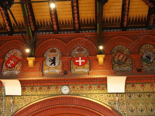 © Bluemoment72, Obraz premium The ceiling decorations of Malbork Railway Station - Coat of Arms of