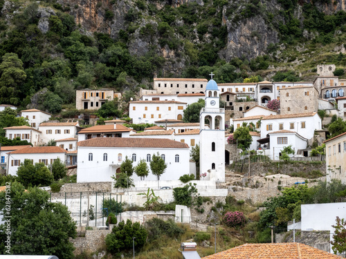 Obraz premium The charming town of Dhermi, lies on the slopes above the sea, Albania