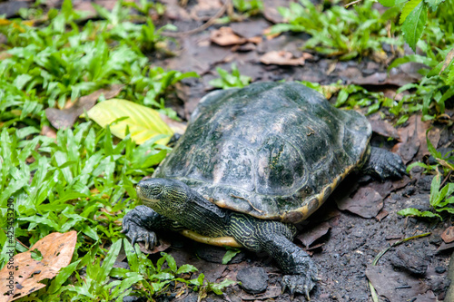 Fototapeta premium The Chinese stripe-necked turtles stands on the ground. This is one of the...