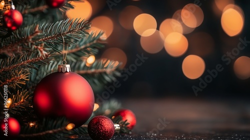 Fototapeta premium The Christmas tree is elegantly decorated with garlands and bright ornaments