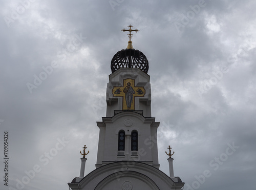 © 6ved, Obraz premium The Church of Peter and Fevronia of the Murom Miracle Workers on the embankment of the city. Novorossiysk. Russia. 08.01.2024