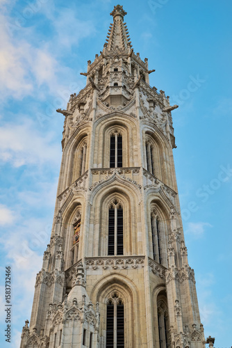 © Ovidiu, Fototapeta premium The Church of the Assumption of the Buda Castle (Nagyboldogasszony-templom), more commonly known as the Matthias Church (Mátyás-templom)