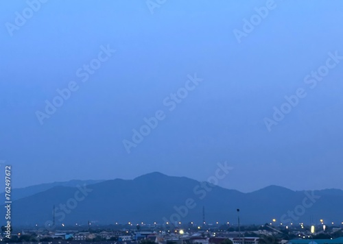 © Sunattha, Naklejka premium The city and the mountain blue color in Thailand
