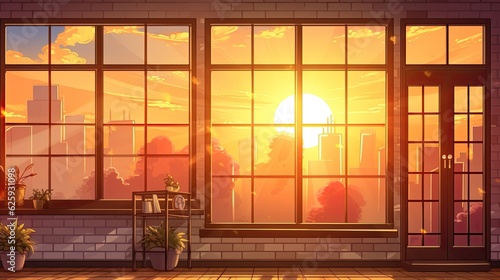 Fototapeta premium The city building's windows are filled with sunlight. (Generative AI)