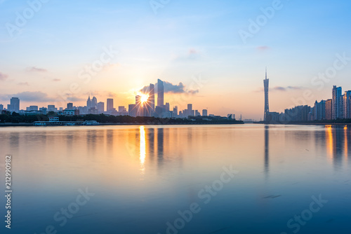 © WU, Naklejka premium The city buildings in Guangzhou at sunrise