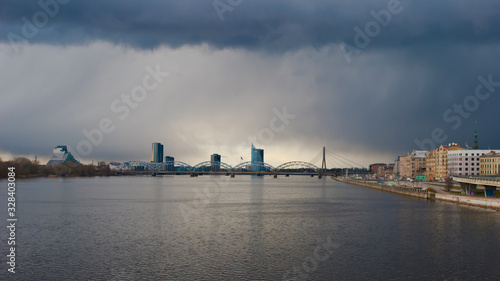 Naklejka premium the city of Riga, the Daugava river, storm clouds