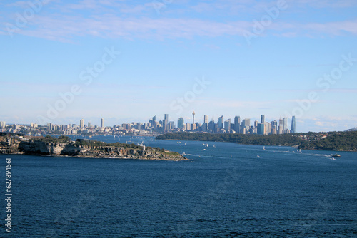 Naklejka premium The City of Sydney Australia Viewed From North Head. Looking over Sydney Harbour filled with sailing boats