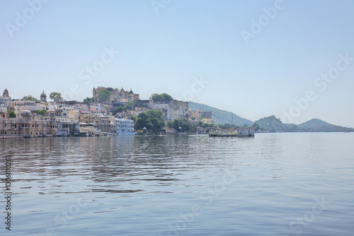 Naklejka premium The City Palace by lake Pichola in Udaipur, the city of lakes in the Province...