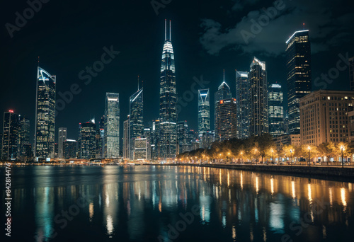 © David Angkawijaya, Obraz premium the city skyline at night in shanghai, china