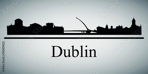 © Dima, Fototapeta premium The city skyline. Dublin. Silhouettes of buildings. Vector on a gray background