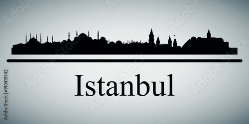 © Dima, Obraz premium The city skyline. Istanbul. Silhouettes of buildings. Vector on a gray background